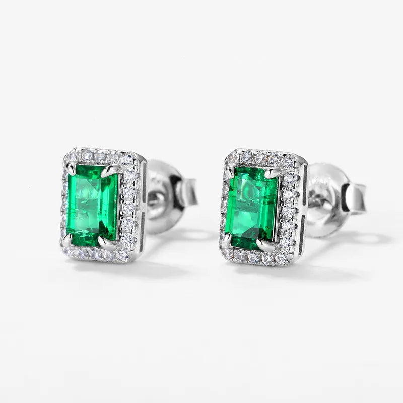 Aretes Plata Esterlina 925 con Esmeralda Cultivada y Circones