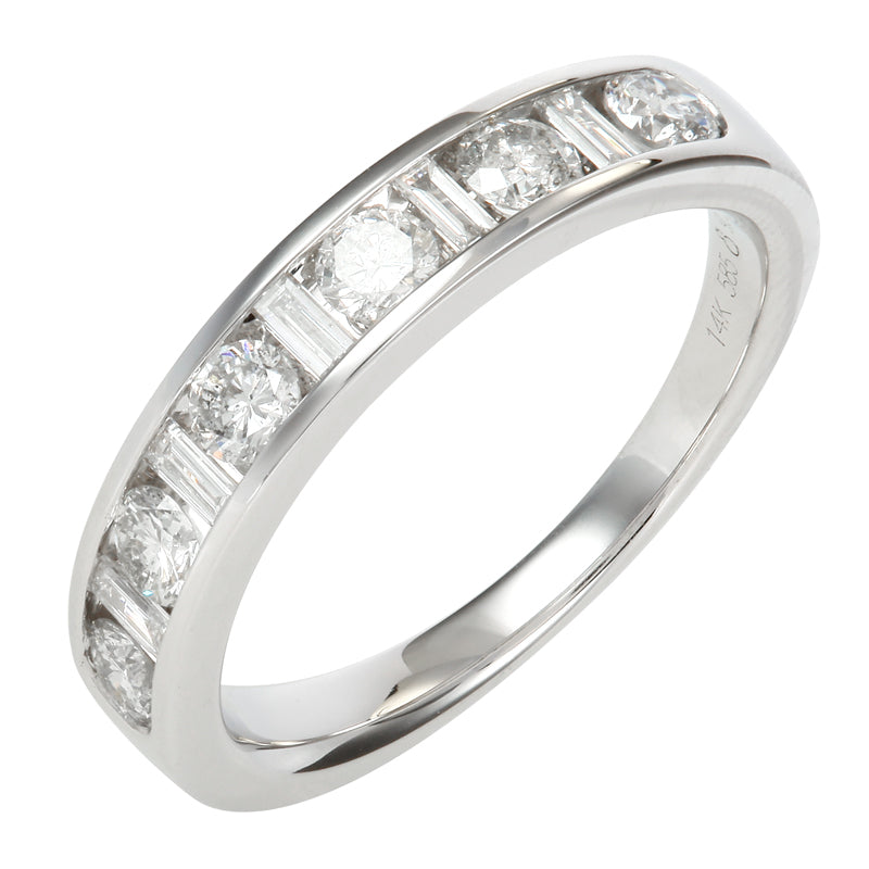 14k White Gold Diamond Ring with Round & Bagette Diamonds #6.5 .60ct